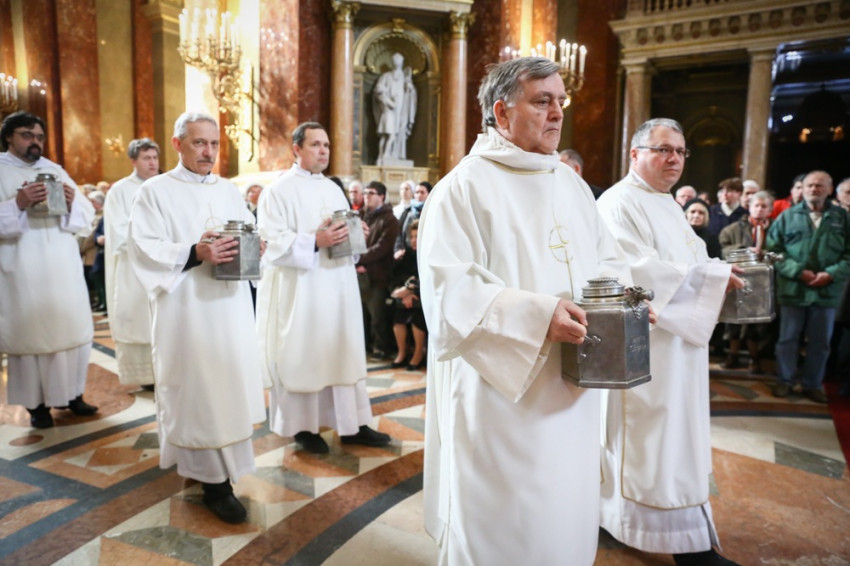 állandó diakónusok hozták be a szentelésre előkészített olajokat a