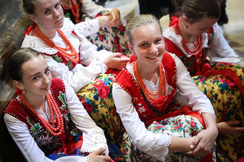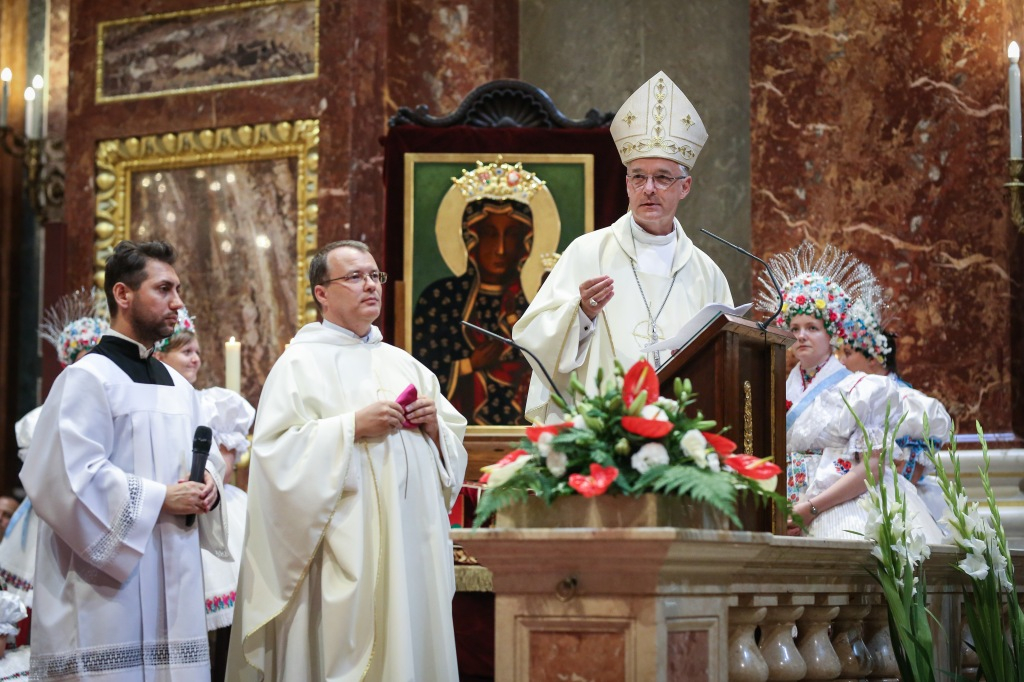 A bazilika már jóval a szentmise előtt zsúfolásig megtelt lengyel és magyar zarándokokkal, hazánkban élő lengyelekkel, hazájuk különböző tájegységeinek népviseletébe öltözött fiataljaival, akik imádságukkal, énekükkel köszöntötték a Szűzanyát.