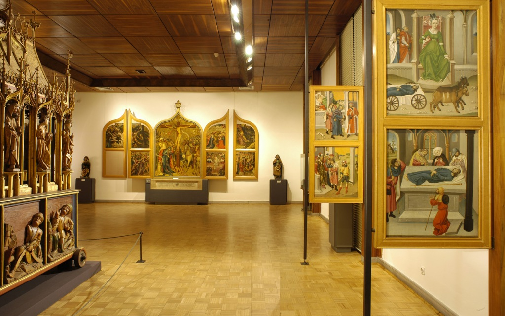 Az állandó kiállításon az első két teremben magyar, osztrák, német és németalföldi 15–16. századi táblaképeket és szobrokat láthat a nagyközönség. A garamszentbenedeki műkincseken kívül itt kaptak helyet M S mester 1506-ban festett passióképei is, valamint érdemes megkeresni az egyik vitrinben őrzött kis méretű, de annál értékesebb Fájdalmas Krisztus-ábrázolást a bruggei Hans Memlingtől. A harmadik terem az itáliai művészet történetét öleli fel az 1280-as évektől a 17. századig.