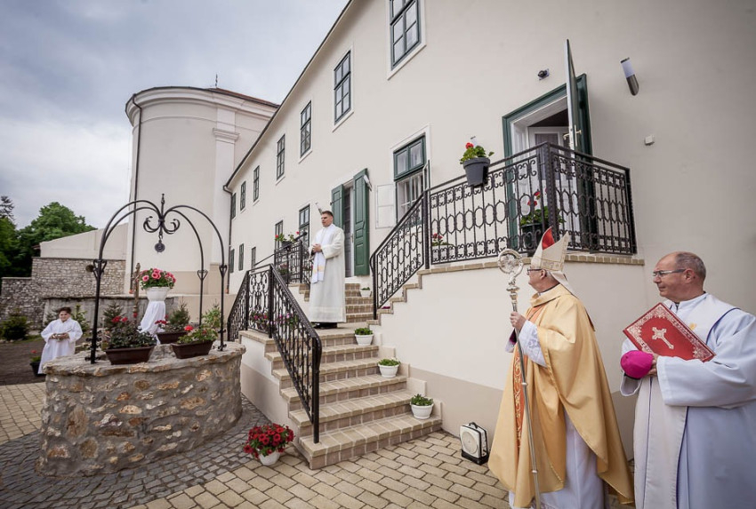 Spányi Antal székesfehérvári püspök május 1-jén ünnepi szentmise keretében Bodajkon, a Segítő Szűz Mária-kegyhelyen megáldotta a külsőleg megújult plébániaépületet és annak díszudvarát.