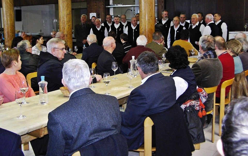 Az igeliturgiát követően a mintegy kétszáz termelő a pannonhalmi gimnázium ebédlőjében folytatta az együttlétet. A borkóstolás közben Liptai Zsolt, az Apátsági Pincészet főborásza köszöntötte a vendégeket, Hortobágyi Cirill perjel háromszáz éves bencés anekdotákat olvasott fel, a nyúli borászok kórusa pedig énekelt.