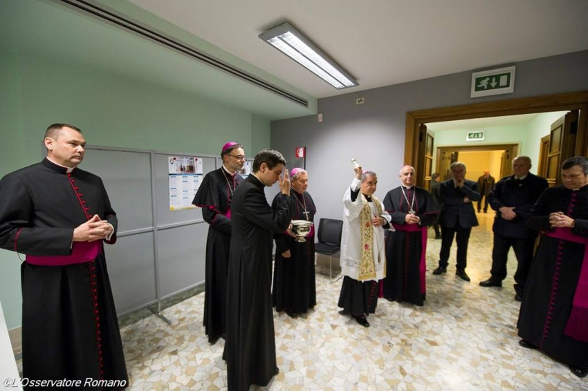 A központot Angelo Becciu érsek, helyettes államtitkár áldotta meg. A fogadóközpont a sugárút közepén, a bazilikával szemben baloldalon található a X. Szent Piusz-palotában kapott helyet. A hozzá kapcsolódó médiacentrum a rá merőleges Via dell’Ospedaléból nyílik.