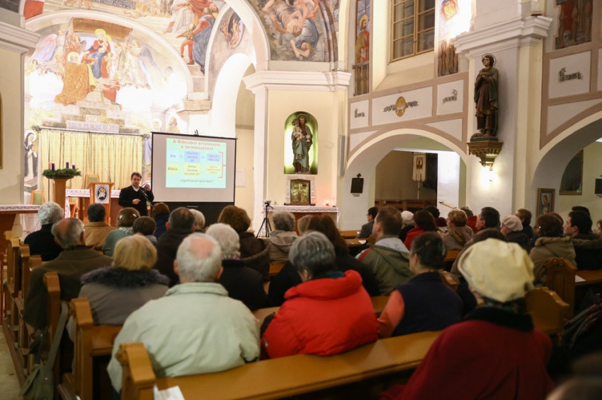 December 7-én, hétfőn este megtelt a pomázi Szent István király-templom. A Pest megyei város katolikus hívei Endrődi Ferenc plébános meghívására három napon keresztül estéről estére az irgalmasság szentévére készülve hallgattak előadásokat, az utolsót Papp Miklós görögkatolikus parókus tartotta. Az „Irgalmasok, amint Atyátok” mottó jegyében meghirdetett elmélkedéssorozat keretében december 5-én Sajgó Szabolcs SJ Mitől lesz isteni az irgalmasságom?, december 6-án Bartha Angéla SSS Isten irgalmas szeretete és a mi Isten-képiségünk címmel tartott előadást. Naszádos Józsefaz előadás-sorozat szervezője kérdésünkre elmondta, míg Sajgó Szabolcs inkább tudományos megközelítést adott, addig Bartha Angéla elmélkedése a lelki ráhangolódást segítette.