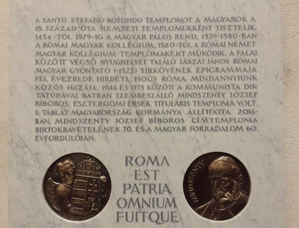 Az emléktábla a templomban eltemetett Lászai János római gyóntató 1523-as sírja feliratának sorait idézi, mely szerint Róma mindannyiunk közös hazája volt és marad.