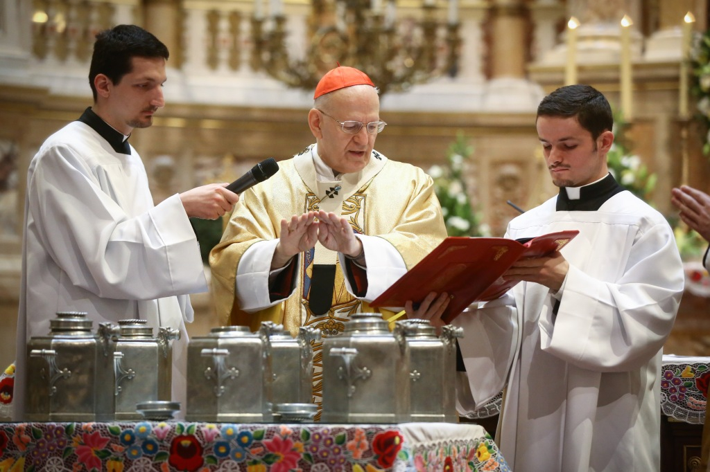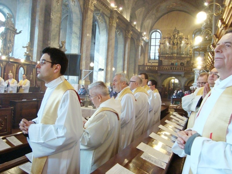 Erdő Péter bíboros a budapesti Szent István-bazilikában az Esztergom-Budapesti Főegyházmegye papságával és az egyházmegye területén szolgáló szerzetes papokkal közösen mutatta be a krizmaszentelési szentmisét, melyen koncelebrált Alberto Bottari de Castello apostoli nuncius és a főegyházmegye két segédpüspöke, Cserháti Ferenc és Snell György.