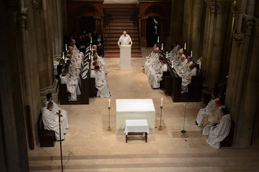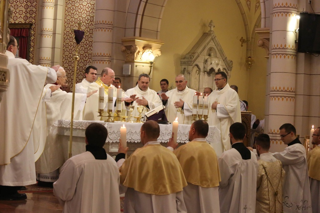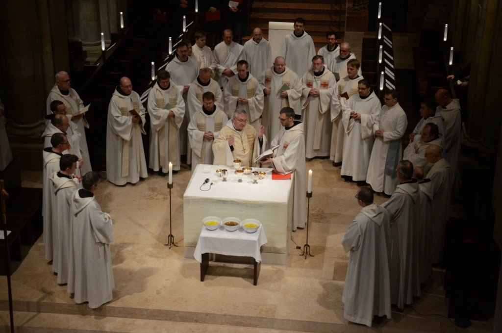 A hagyományoknak megfelelően nagycsütörtökön 10 órakor kezdődött az olajszentelési szentmise a pécsi székesegyházban, amelyen az egyházmegye papsága az egység kifejeződéseként közösségben újította meg Istennek tett ígéretét az ünnepi liturgia keretében.