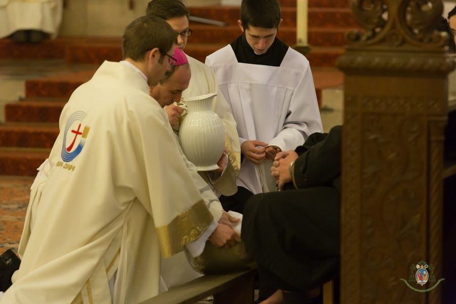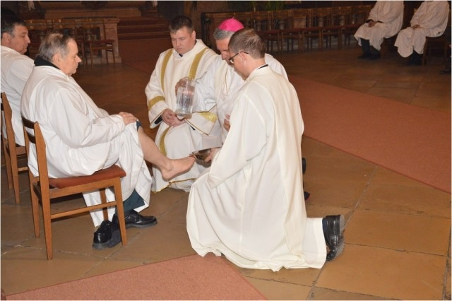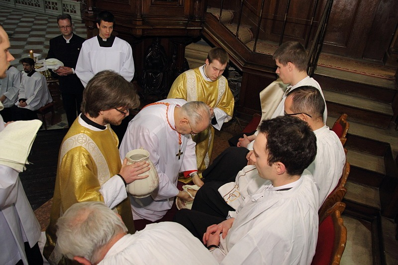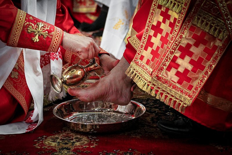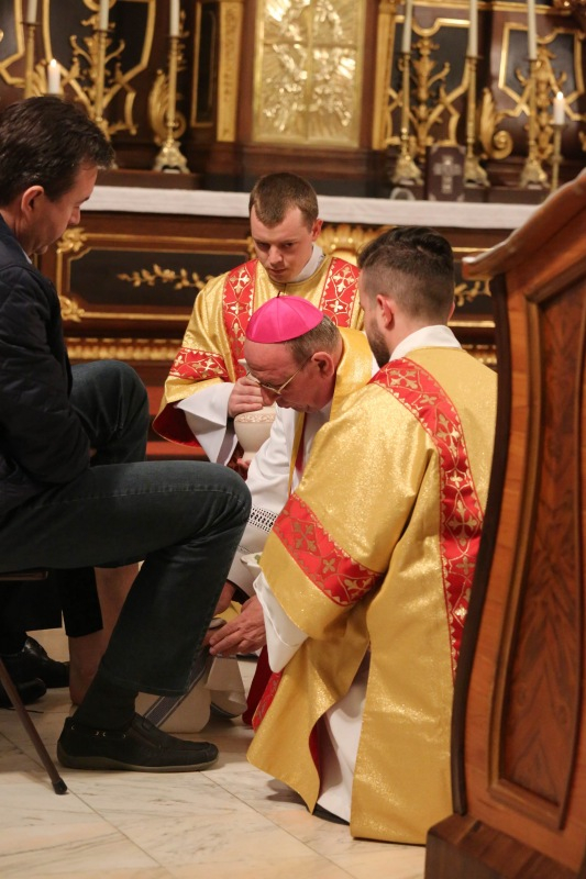 A Szent Liturgiát a lábmosás szertartása zárta, amelynek során az érsek megmosta tizenkét pap lábát. Ez a szertartás felidézi, miként mosta meg Jézus tanítványai lábát a Titkos Vacsora estéjén, felhívva ezzel az apostolok figyelmét a szolgálat fontosságára. A rítus lényegét fogalmazza meg az utolsó imádság: „Te, Uralkodónk, jöjj most méltatlan szolgáid közé, akik példádat követik; mosd le rólunk lelkünk minden szennyét és tisztátalanságát, hogy megtisztulva a bűneink folytán ránk tapadt portól, s a szeretet törlőjével egymást megtörölve kedvedben járhassunk életünk minden napján.”