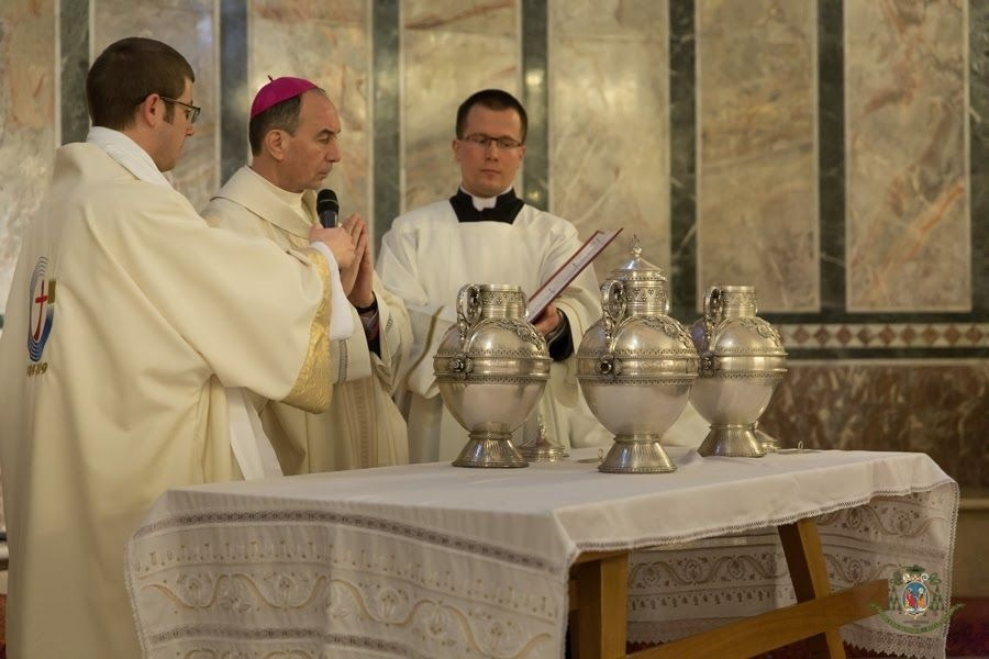 Spányi Antal megyéspüspök mutatott be szentmisét nagycsütörtökön délelőtt a székesfehérvári bazilikában, amelyen a hagyományok szerint sor került a krizma és a szent olaj megáldására. A szertartáson jelen volt Takács Nándor nyugalmazott püspök, az egyházmegye egész papsága, a szerzetesrendek képviselői és számos hívő, aki elkísérte papját az ünnepre.