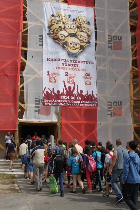 Vakon Zsolt püspöki titkár és ifjúsági referens javaslatára ugyanakkor érdekes, szív alakú kompozíciót alkottak a fiatalok körében igen népszerű minion-figurák segítségével. Ezek a figurák tulajdonképpen olyan szolgák, kegyencek, akik feltétel nélkül szolgálják mesterüket, nem szeretik a megválaszolatlan kérdéseket, illetve a bizonytalanságot, és ha felrázzák őket, fényrúdként világítanak a sötétben. Furcsa, különleges lények ők, azt az üzenetet közvetítik, hogy a felénk közelítő Isten a furcsaságainkkal is akar kezdeni valamit, odafigyel ránk, és érdeklődik irántunk – hangsúlyozta a megyéspüspök. Azt kívánta a fiataloknak, engedjék, hogy őket is megérintset Krisztus fénye – írta az erdon.ro-n megjelent beszámolójában Ciucur Losonczi Antonius.