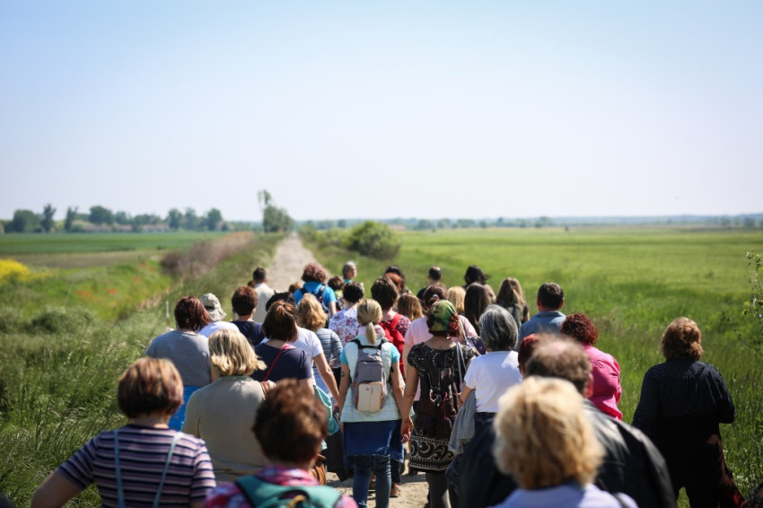 Tolna megyében járunk. Úti célunk Báta, a kegyhely, de a résztvevők a szomszédos településen, Furkótelepen gyülekeznek. Innét indul az egyórásra tervezett, imádságos zarándoklat, amelyet mise, majd a közösségi találkozás alkalma követ. Ötvenen lehetünk, de ez nem a teljes létszám. Bátán várnak, akik nem tudnak vagy mernek velünk tartani, de a templomból velünk imádkoznak.