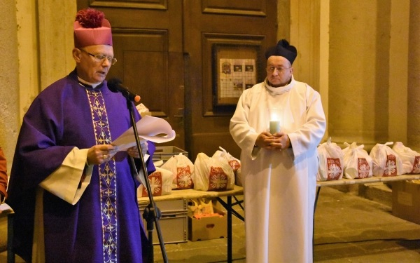 Veres András köszöntőjében azok felé irányította a hallgatóság figyelmét, akik talán maguk előtt is szégyellik, hogy szükséget szenvednek. Rámutatott: a Karitász feladata, hogy elérje ezeket a „szemérmes szegényeket”. Majd kiemelte, hogy a segítő szolgálat lényege a személyes kapcsolat, és buzdította a jelenlévőket, gyújtsanak egy gyertyát a szegényeként.
