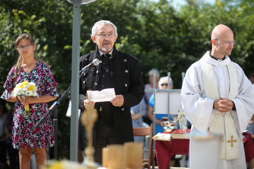 Ahogy Spányi Antal fogalmazott, valóban a természet katedrálisában, messze a lakott településrésztől, megbújva az erdős-ligetes dombtetőn, teljes békében ünnepelhetett a közösség. Tóth András plébános és Klaibán Sándor, a képviselőtestület világi elnöke köszöntötte a zarándokokat.
