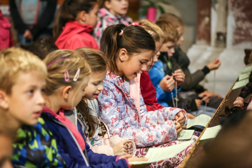 Bevallom, kétkedő kérdésekkel indultam útnak, hogy ellátogassak a szolnok-belvárosi Szentháromság-templomban tartott imádságra, amelyen a Tiszaparti Római Katolikus Általános Iskola és Gimnázium alsó és felső tagozatának tanulói vettek részt, valamint a város önkormányzati iskolájából azok a hittanosok, akiknek éppen ebben az időpontban lett volna hittanórájuk. Mintegy ötszázötven gyermek gyűlt össze a templomban, hogy – csütörtök lévén – a világosság rózsafüzért mondják el. Kivetítőn olvashatták a titkokat, a tizedek közt pedig a Csillagfény gyermekkórus énekelt Kómár István atya vezényletével. Máthé György szolnoki esperes, plébános vezette a majdnem egyórás imádságot.