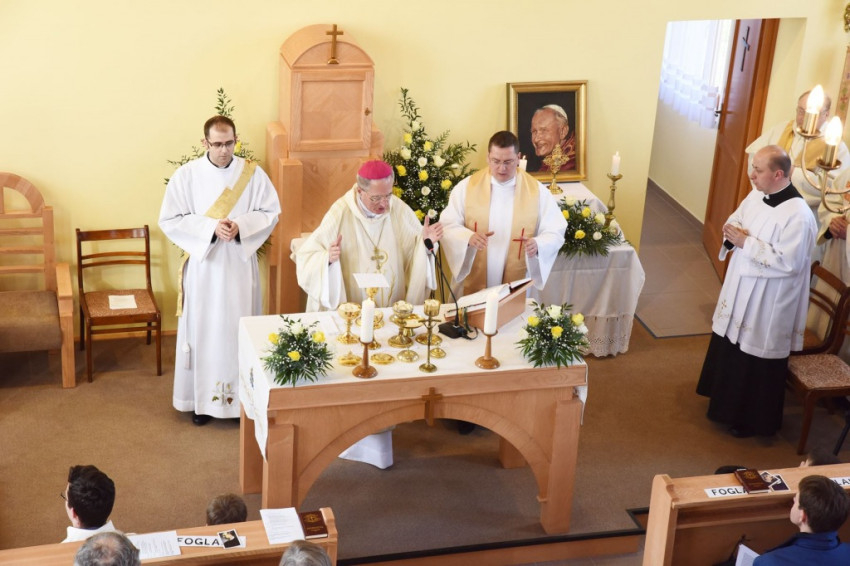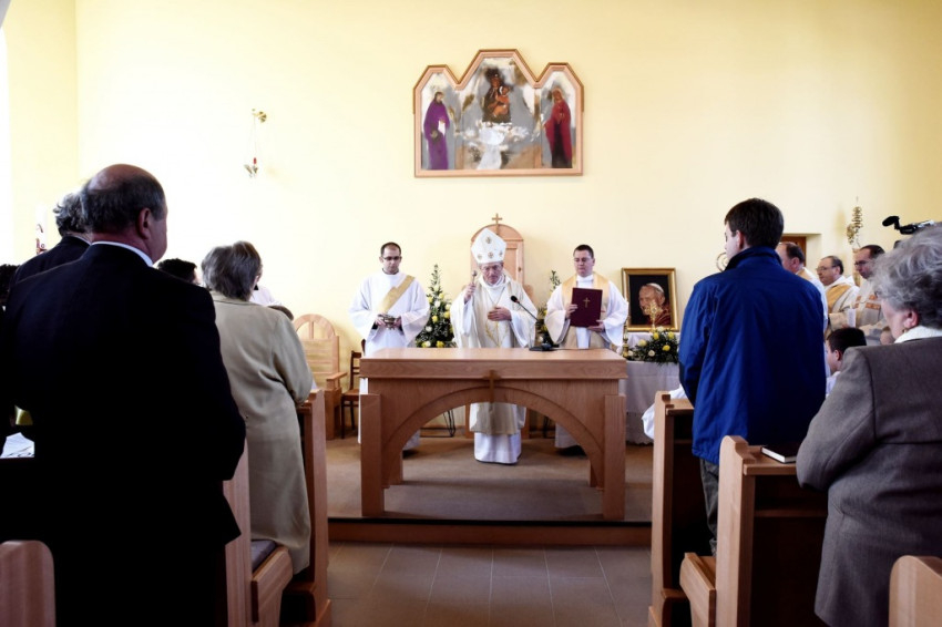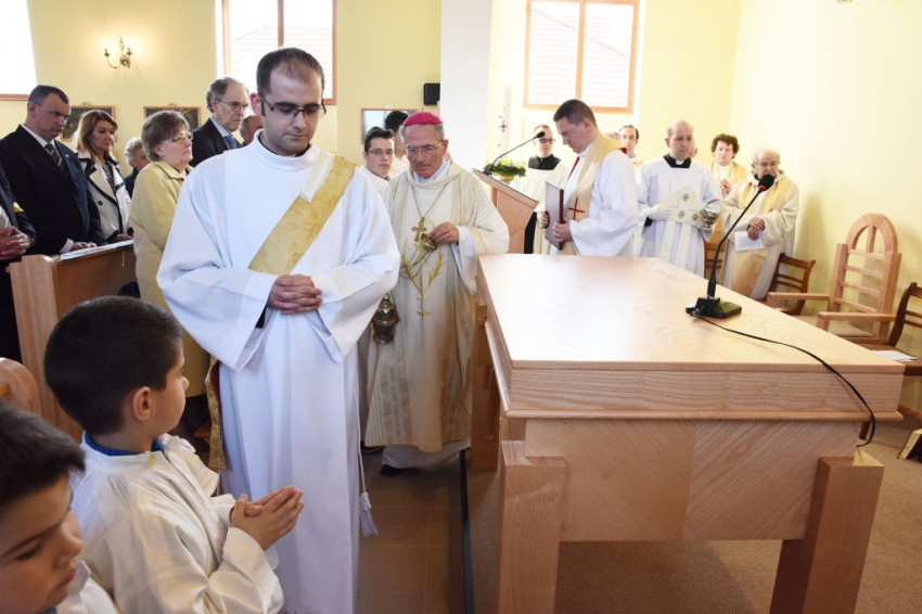 A szentmise elején a főpásztor körbejárva megáldotta az új templomot és annak oltárát.