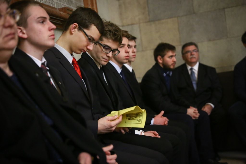A kiállításmegnyitó elején Pamper Zsolt 11. osztályos tanuló a Sulpicius Severus által írt Márton-életrajzból olvasott fel részleteket. Az első idézet a második könyvből Szent Márton életének azt a történetét elevenítette fel, amikor a szent életű püspök saját alsóruháját adta oda egy ruha nélkül való koldusnak.