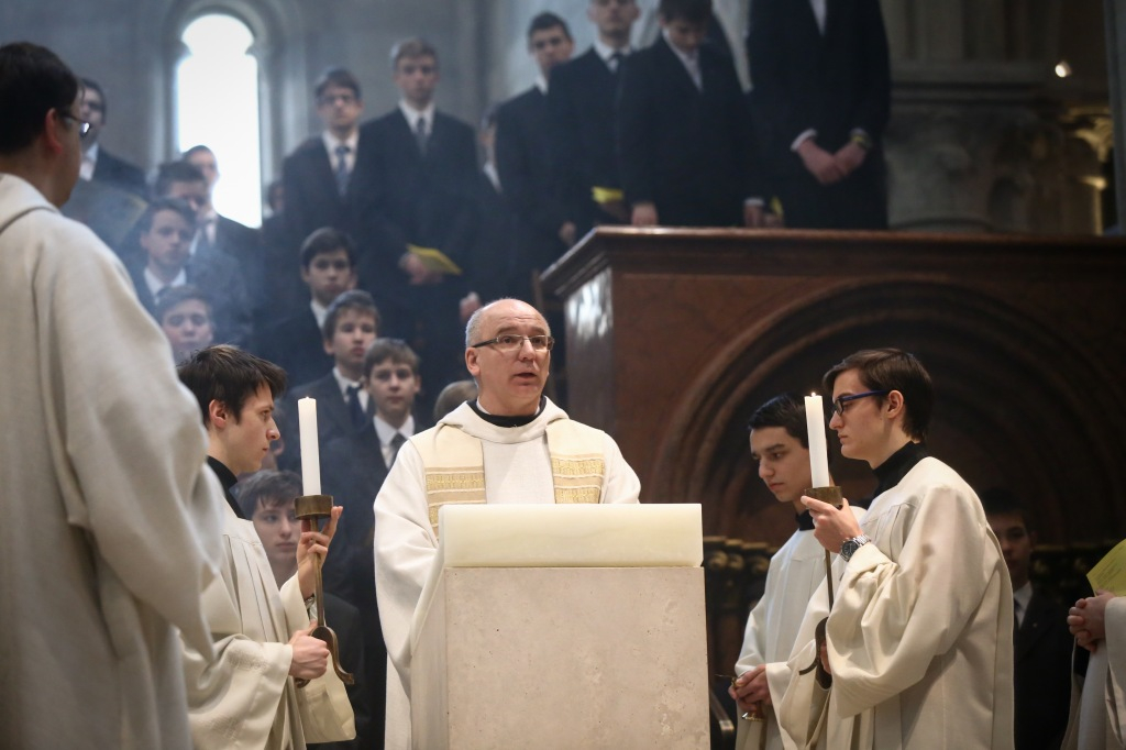 A délelőtt 10 órakor kezdődött szentmise elején Várszegi Asztrik pannonhalmi főapát köszöntötte az egybegyűlteket, a megjelent egyházi és világi vezetőket, így Veres András szombathelyi megyéspüspököt, a koncelebráló Bosák Nándor nyugalmazott debrecen-nyíregyházi püspököt, Puskás Tivadart, Szombathely polgármesterét, Bagó Ferenc pannonhalmi polgármestert, Harangozó Bertalant, Vas megye kormánymegbízottját, Majthényi Lászlót, a Vas Megyei Közgyűlés elnökét, Széles Sándort, a Győr-Moson-Sopron Megyei Kormányhivatal kormánymegbízottját, Hegyi László egyházi kapcsolatokért felelős helyettes államtitkárt, Szommer Ildikót, a szombathelyi Szent Márton programiroda vezetőjét, Virágvölgyi Istvánt, a Robert Capa Fotográfiai Nagydíj titkárát, valamint Török András művelődéstörténészt, a Summa Artium ügyvezető igazgatóját. Várszegi Asztrik a Szent Márton születésének 1700. évfordulója alkalmából meghirdetett Szent Márton-emlékévvel kapcsolta össze Szent Benedek ünnepét, utalva a két szent alakjára. Mint elmondta, Márton és Benedek olyan emberek voltak, akik az Isten iránti szeretet elébe nem helyeztek semmit. Várszegi Asztrik a közelgő húsvét ünnepére is felhívta a figyelmet, ahogyan fogalmazott: a feltámadás misztériumát megelőlegezi Szent Benedek égi születésnapja, amely így a keresztény reményt erősítheti a hívekben.