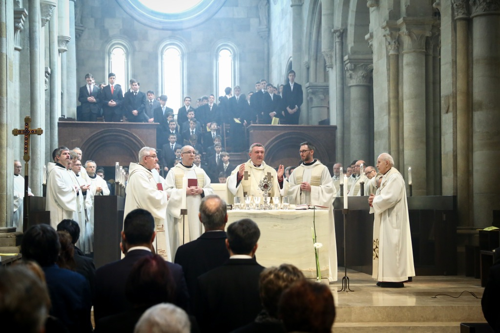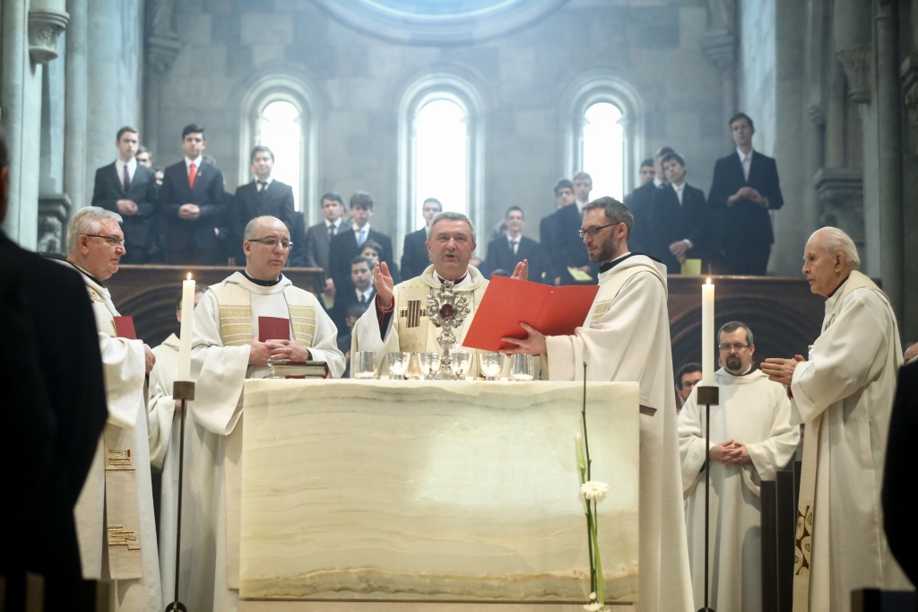 A megyéspüspök ugyanakkor Szent Benedek ünnepén a fennálló, jelen világunkat meghatározó belső megosztottság ellenpontjaként beszélt a nyugati szerzetesség atyjának példájáról, aki reményt és jövőt tudott adni az embereknek, és aki életével az Istenre való emlékezésre szólít fel. Veres András hangsúlyozta, hogy ma egész Európa megfeledkezni látszik Istenről, amelyre már II. János Pál pápa is figyelmeztetett, hiszen aki Istenről feledkezik meg, az a jövőről mond le. Benedek és Márton olyan szentek voltak, akik másokat is tudtak vonzani, és akiken keresztül mi is reménytelinek láthatjuk az életünket – fogalmazott a püspök. Másokat látóvá tenni – ez a hivatása a bencéseknek munkájukon és az oktatásban betöltött szolgálatukon keresztül, amellyel így felszámolják a lélek belső meghasonlottságát.