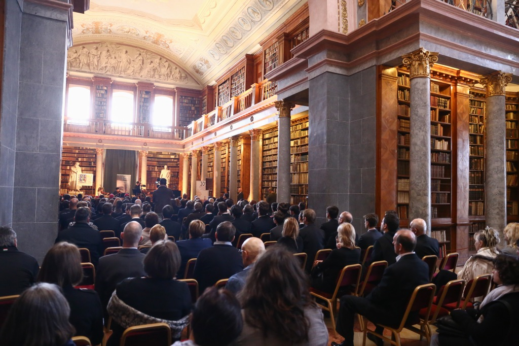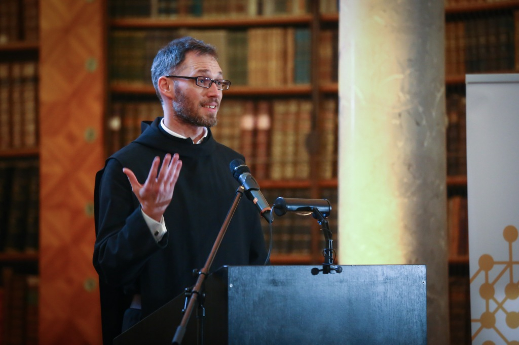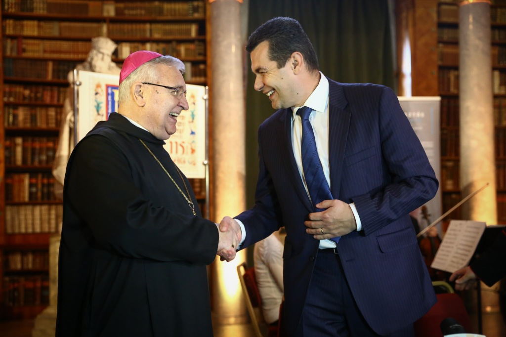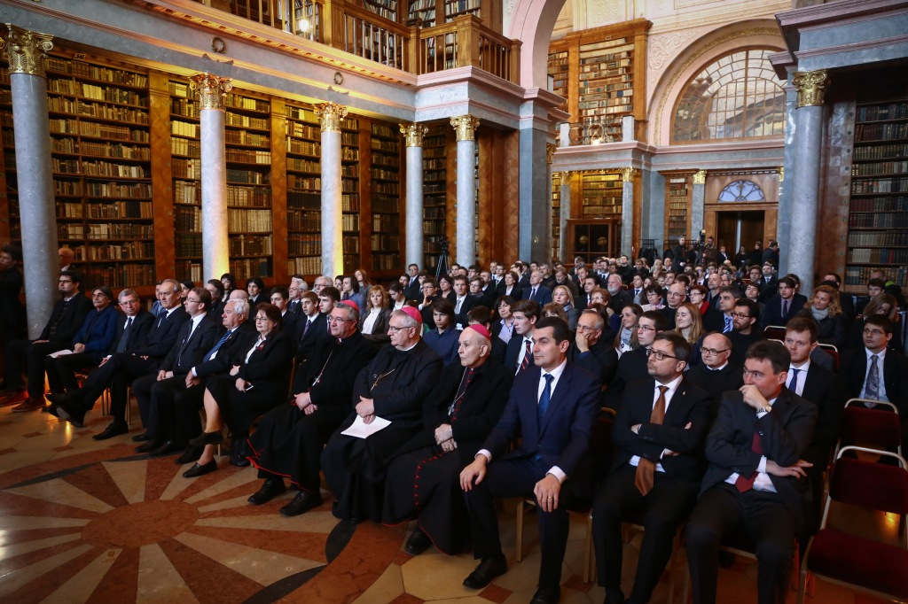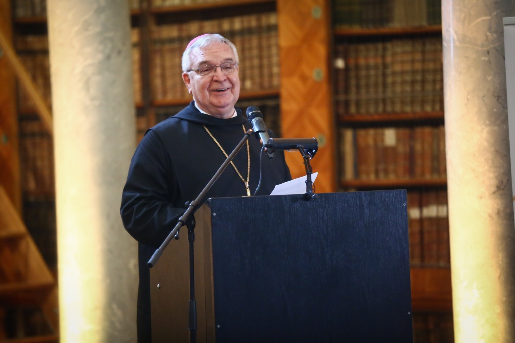 Az ünnepi program elején Dejcsics Konrád OSB, a Pannonhalmi Főapátság kulturális igazgatója köszöntötte a megjelenteket, ráirányítva a figyelmet a Főapátsági Könyvtár terére mint a kultúrák közötti találkozás metszéspontjára, kiemelve a Szent Márton-emlékév bencés mottóját: „Közösségben vagyunk.” Mindezt a könyvtár mennyezetfreskóján látható Pallasz Athéné alakjának ábrázolásával vezette be, amely elsőre furcsa módon hat egy bencés monostor falai között. Felhívta a figyelmet a könyvtárterem ajtaja felett elhelyezett keresztre, valamint arra, hogy ha tudjuk, minek a jegyében lépünk be a könyvtárba, nem kell félnünk attól, hogy egy idegen kultúrával kerüljünk kapcsolatba. Így a könyvtártér a rácsodálkozás helyévé válhat. Dejcsics Konrád bevezető szavai tehát a közösségben való létnek arra az aspektusára irányultak, amely egyfelől a Jézus Krisztussal való egységre mutat, másfelől pedig arra a közösségre hív, amelyet mindazokkal meg lehet élni, akik a miénktől különböző kulturális háttérrel és hagyományokkal rendelkeznek. Így a monostor a nyitottság helye tud lenni, olyan befogadó közeg, amely az idegent és a másfélét nem utasítja el.