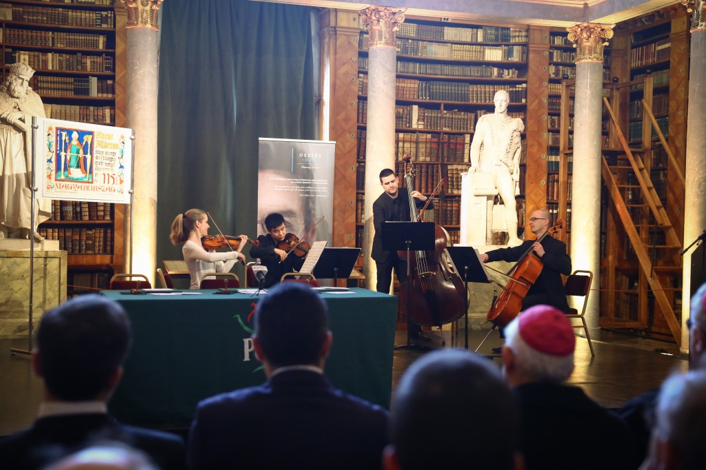 A bélyegátadás és a kiállításmegnyitó között a Győri Filharmonikusok kamarazenekara adta elő Puccini III. C-dúr szonátáját.