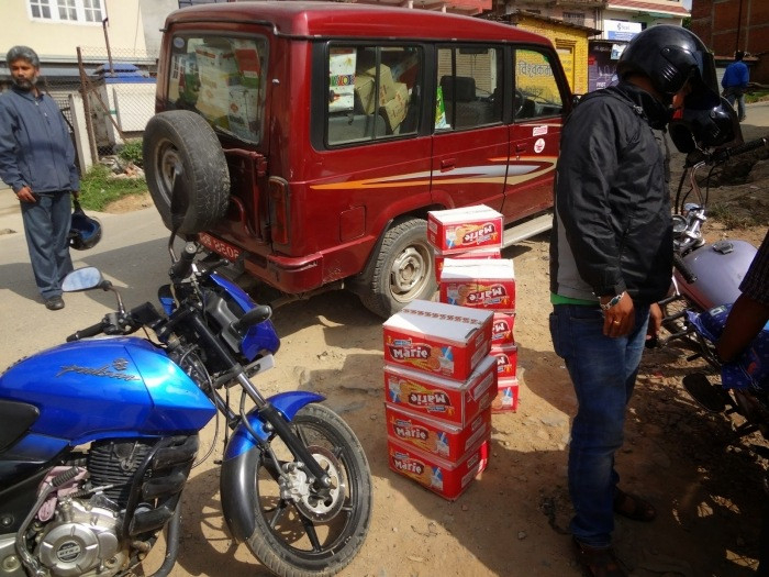 Június 4-én két megrakott teherautót indítottunk útnak. A rakomány 930 zsák rizsből, valamennyi lencséből, olajból, sóból és szappanból állt. Minden teherautó mintegy 5,5 tonna segélyrakományt szállított. A rakodás reggel kezdődött, és csak délben fejeződött be, mert az összes munkát kézzel végezték, nem targoncával. A teherautók déltájban elindultak Ipa felé Purna Kumar Dangol, a szalézi intézmény egyik tanárának irányításával, aki rátermett, tapasztalt és megbízható önkéntesként vesz részt a helyreállítási feladatokban.