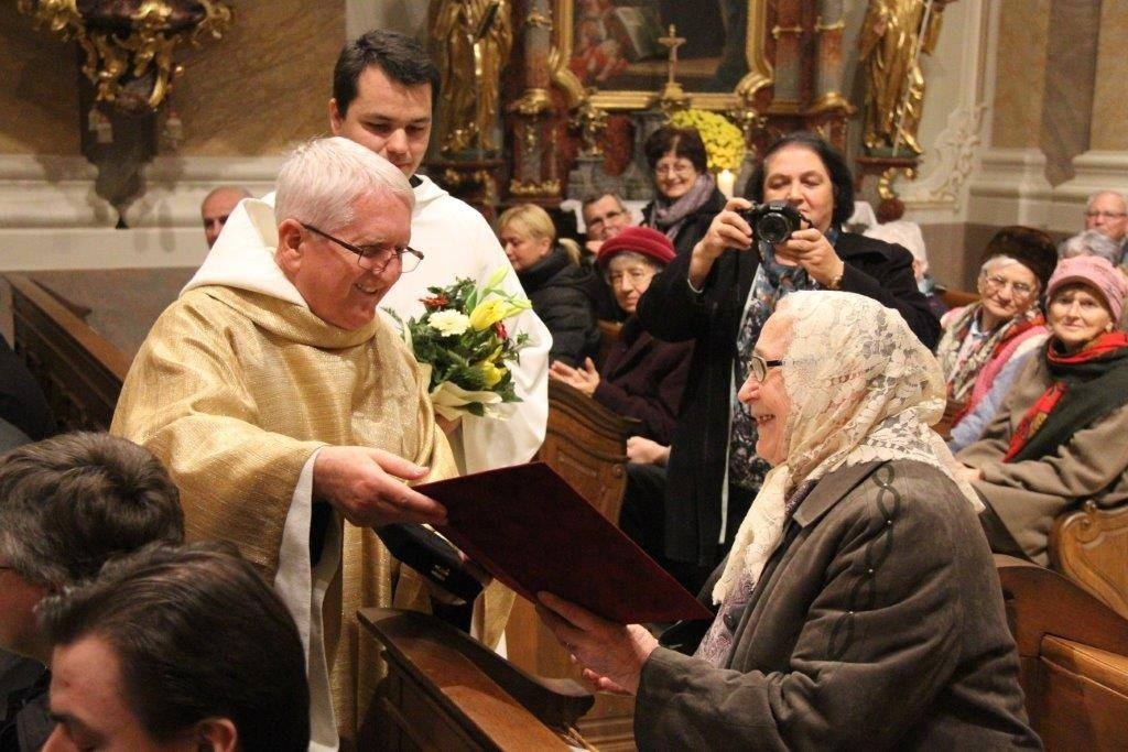 A befejező áldás előtt Korzenszky Richárd a Vajda Sámuel egykori tihanyi apátról elnevezett emlékéremmel tüntette ki Horváth Imréné Aradi Terézt. A díjazott keresztelése óta, több mint kilencven éve a tihanyi apátsági templom híve, és unokája ebben a templomban mutatta be újmiséjét.