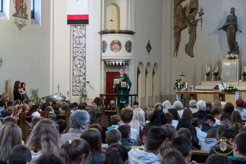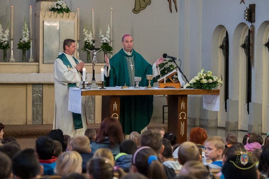 Az evangéliumi szakasz a pogány százados hitének bizonyságáról szólt. Homíliájában Udvardy György püspök a katonatiszt bizalmát emelte ki: „Óriási dolog a bizalom. Akiben bízunk, annak a tanítását elfogadjuk. Ilyen bizalmasa a szülő a gyermeknek, a pedagógus a szülőknek és a gyermekeknek. A közösség tagjai kölcsönösen bíznak egymásban. A tanév kezdetén szítsuk fel magunkban ezt a bizalmat! Kérjük szentjeink közbenjárását, hogy Jézusban bizakodjunk.”