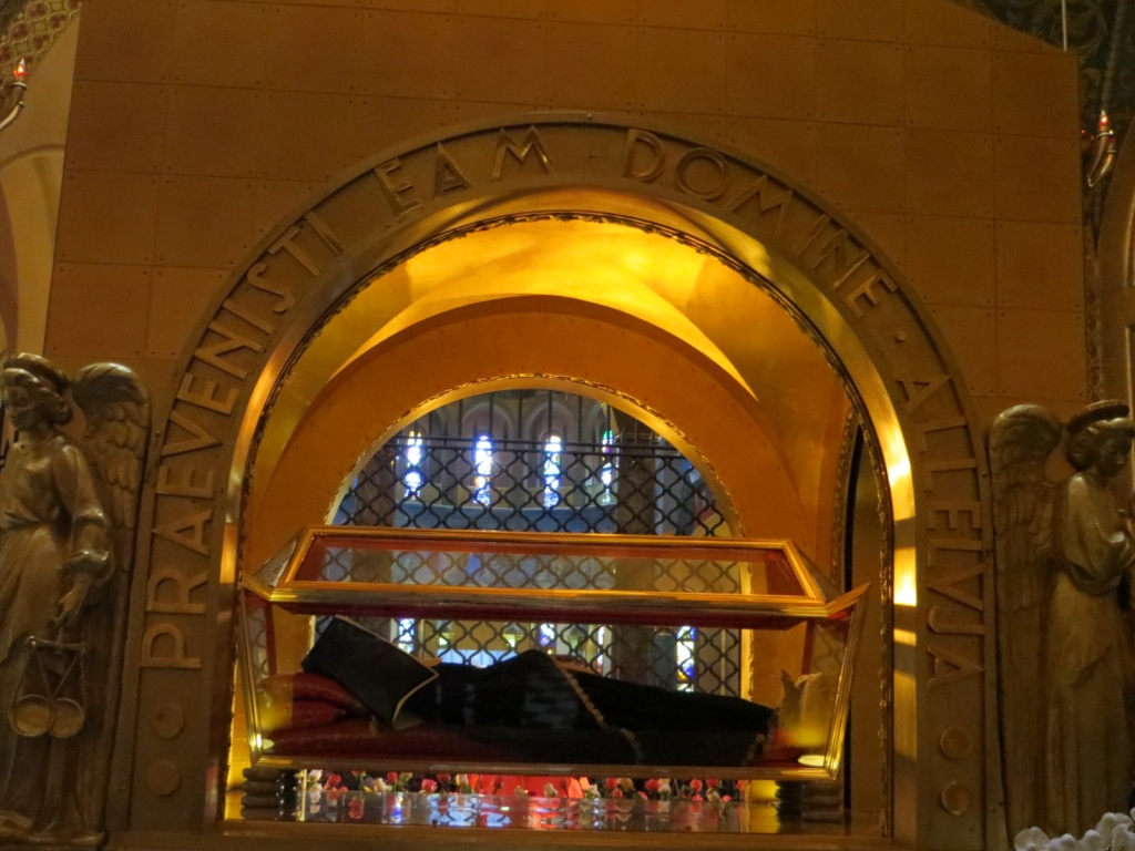 bazilika bal oldalkápolnájában elhelyezett üvegkoporsóban nyugszanak.
