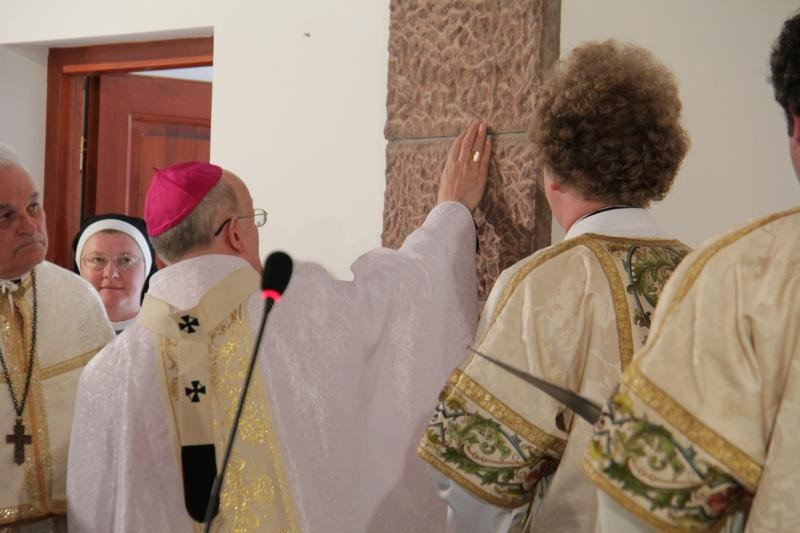 A szertartás kezdetén a főpásztor négy helyen kente meg krizmával a templom falait, valamint megáldotta az új ambót.