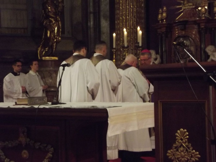 A szentmisén koncelebrált Schmatovich János kanonok, győrhegyi prépost; Németh László kanonok, pápai prelátus, általános püspöki helynök; Lukácsi Zoltán kanonok, a Győri Papnevelő Intézet és a Győri Hittudományi Főiskola rektora; Zsebedics József kanonok, győr-szigeti és győr-újvárosi plébános; Martos Balázs Levente, a Győri Papnevelő Intézet prefektusa; Juhos Imre, a Győri Papnevelő Intézet spirituálisa, valamint Mogyorósi Márk püspöki titkár.