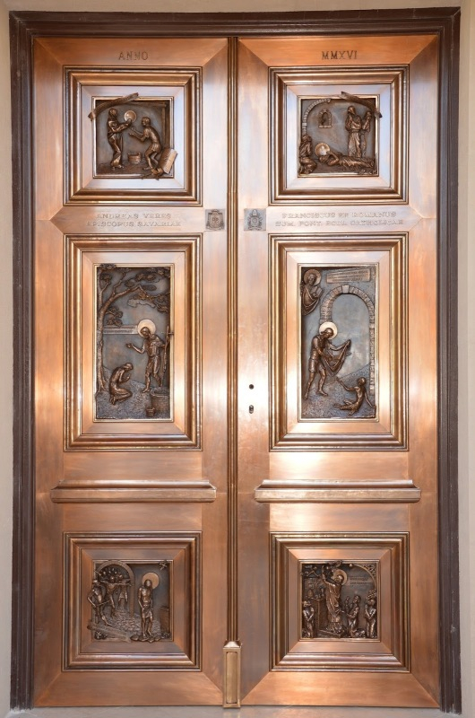 E két jubileum szerencsés egybeesése legékesebb jelképének tekinthetjük a szombathelyi székesegyház új bronzkapuját, amely az egyházmegye szentévi kapujaként is szolgál. A kapuszárnyakat díszítő hat dombormű, Veres Gábor szobrászművész alkotásai, Szent Márton életének hat jeles epizódját mutatja be.