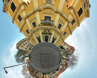 A virtuális séta során a templomon belül a felső sorban található galéria képeire, valamint a balra látható alaprajzra kattintva egyaránt lépegethetünk. Megtekinthetjük balra a régi főoltárt a Csáky-címerrel, illetve jobbra a torinói lepel hiteles másolatát.